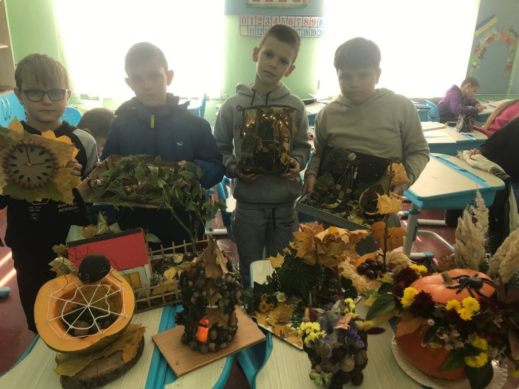 4-А Виставка дитячих композицій. Осінь- це час, коли природа вдягає своє найпишніше вбрання. Все навколо спалахує золотисто-червоним багаттям, а кожен крок по килиму з листя стає чарівною мелодією. Підключивши фантазію та за допомогою дарів природи діти створили чудові роботи з різноманітних овочів,листя, шишок, жолудів,гілок та кори дерев. Всі поробки учнів 4-А класу це справжні витвори мистецтва.
